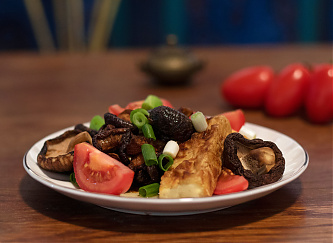 Fennséges ízvilágú vega tofu shiitakés gomba miso feltéttel, paradicsommal. Tofu, szója az okinavai étrend jellemzői, antioxidáns okban, fitoösztrogénben gazdag, fantasztikus ízű alapja. A húskedvelők is imádni fogják, extra íze miatt. A shiitake gomba kiváló méregtelenítő, gazdag B- vitaminban. Szív -és érrendszeri problémák ellen, fertőzésekkel szemben bizonyítottan kedvező hatású, valamint gyulladáscsökkentő hatással bír. A The George Mateljan Alapítvány honlapján a világ legegészségesebb ételei között szerepel. 8 féle eszenciális aminosavat tartalmaz, csökkenti a koleszterinszintet, véd a rák ellen, serkenti az agyműködést.